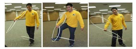 21. mientras su brazo derecho está en formación ala encontrar su tercer aro en el suelo y repita los pasos 8-10, esta vez va a utilizar el aro más lejos lejos para engancharlo.
