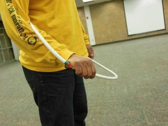 5. ahora que tienes el aro la mano izquierda, tomar la mano derecha y agarrar desde el interior como en la imagen. No te preocupes si se ve doblado o desproporcionado.