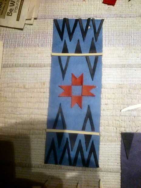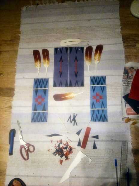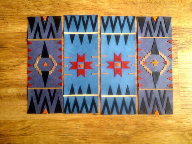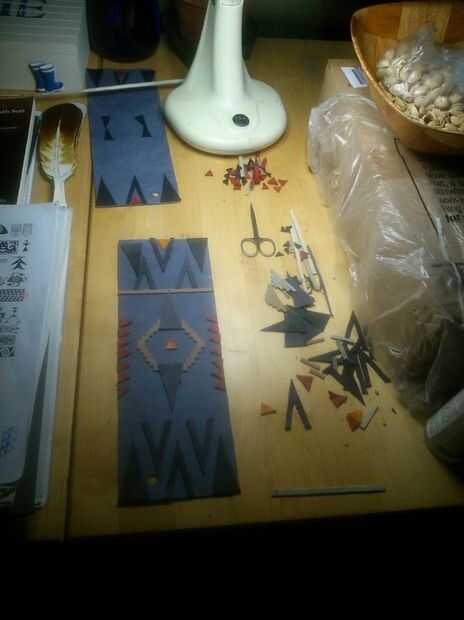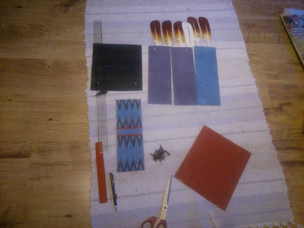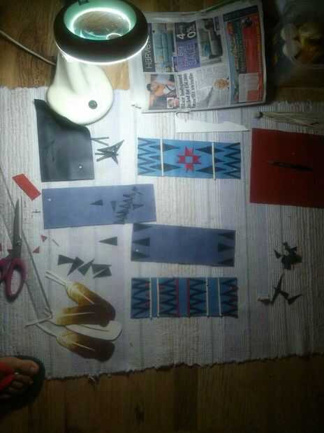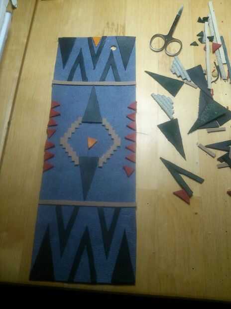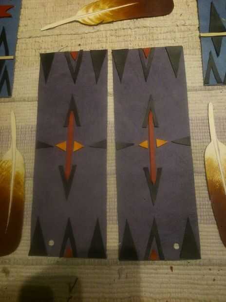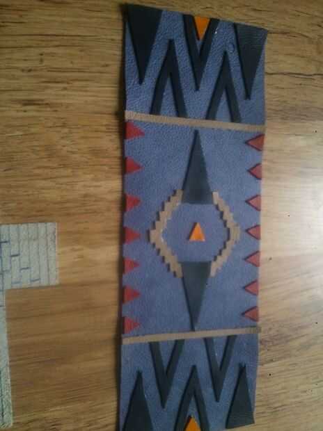 Busqué muchos patrones diferentes de la tribu y decidió pedir prestado algunos y hacer a los demás y sé las auténticas camisetas tienen estos patrones en granos pero no sólo no tengo el tiempo disponible, la cantidad de granos que necesitaba para estos era también, más allá de mis posibilidades a pagar. Pero lo más importante que quería mostrar la versatilidad de cuero como medio decorativo.
