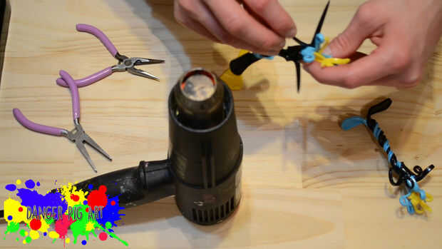 Ahora calienta la horquilla negra en la base y los dientes. Enrollamiento de la parte restante de la horquilla de negro sobre la horquilla azul y extienda las púas en forma de estrella como usted hizo con los tenedores azul antes. Después se separan hacia fuera de los dientes se les calienta y enrollamiento les o hacerlos ondulado. Lo mismo para la otra flor.