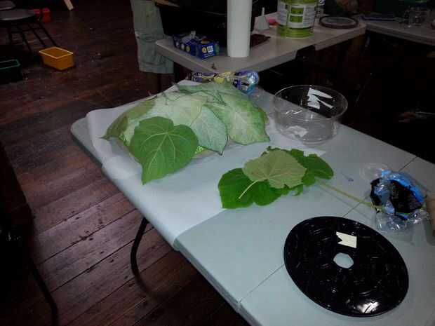 3. En la preparación de este proyecto, temprano en el día, recogimos las hojas más grandes que podemos encontrar en nuestro jardín
