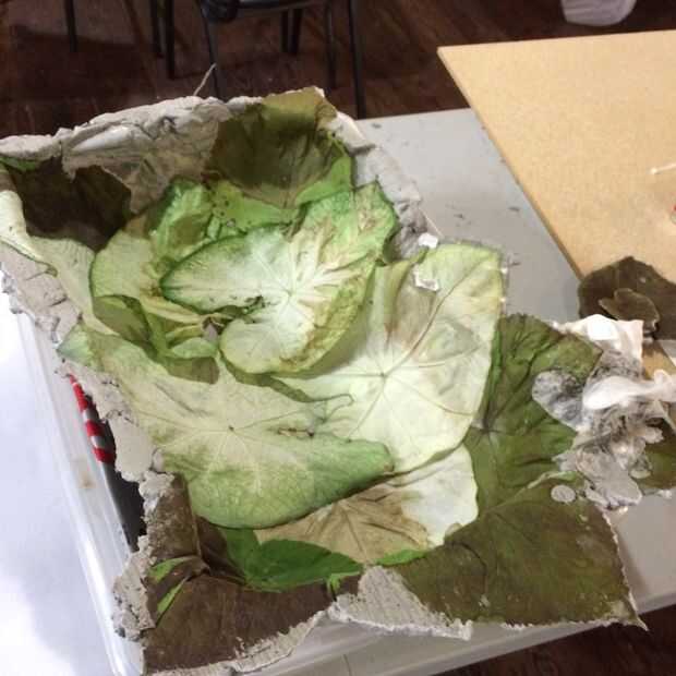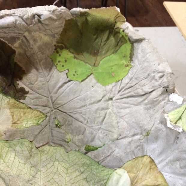1. Después de que el hormigón había curado, secado y endurecido, volcó la cuenca y quitado las hojas