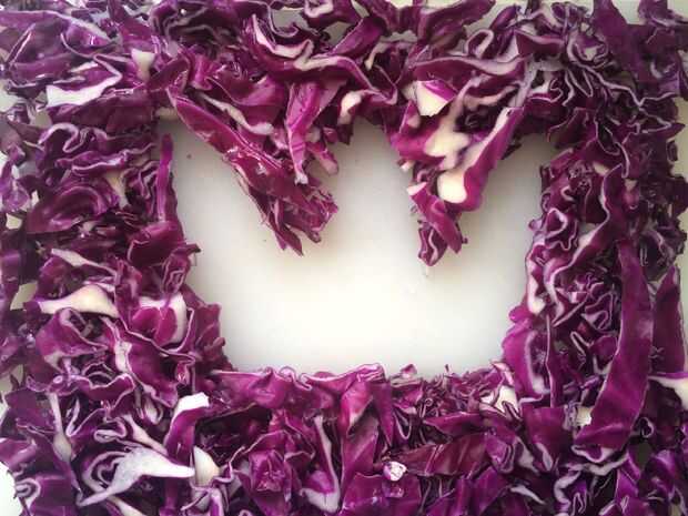 Ahora destrozar la col y darles forma, podemos utilizar cuchillo y nuestras manos para hacer una mejor forma y además, añadir algo de agua, para hacerla más hermosa.