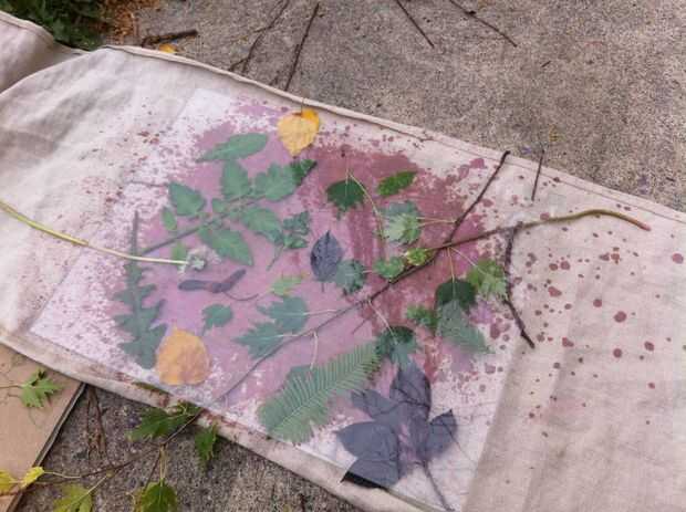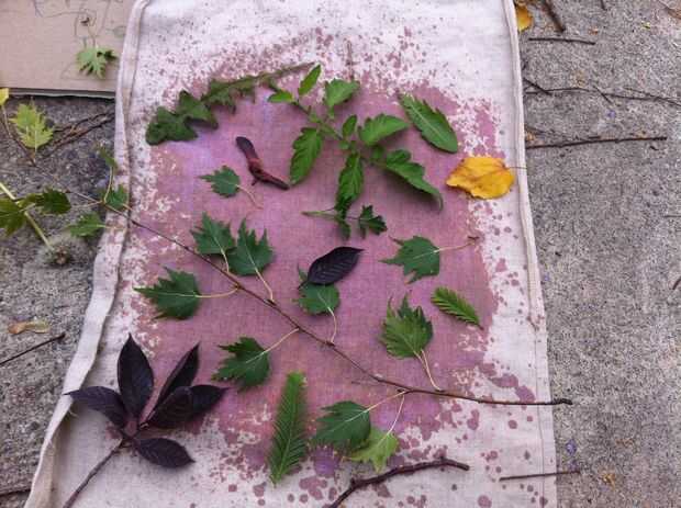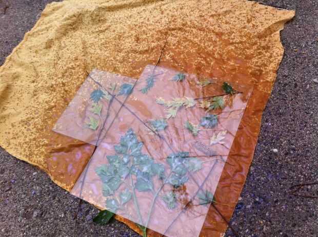 Coloque a la tela uniformemente sobre la superficie plana. Si eres rápido con las hojas, puede hacerlo en la luz del sol en vez de arreglar las cosas dentro y luego llevar todo fuera (que sería más de un dolor).
