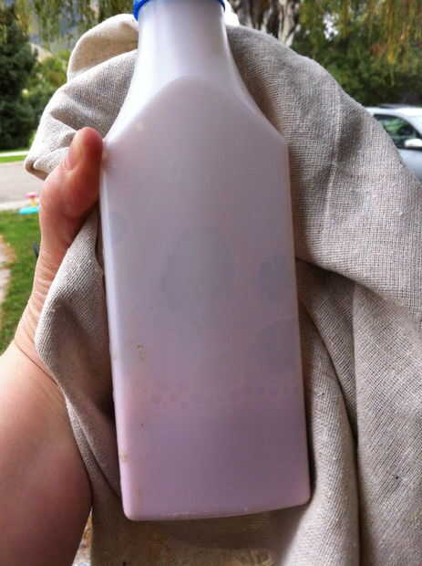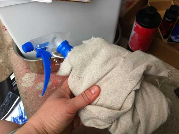 Asegúrese de que usted rápidamente algo abrigo alrededor de la botella del aerosol para bloquear cualquier luz entrando por el plástico y exponer el tinte.