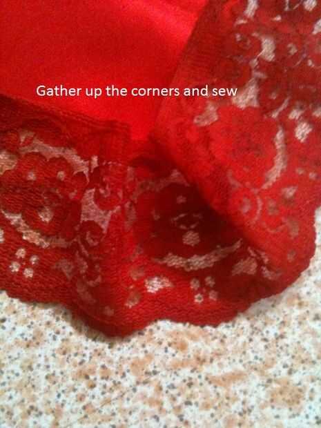 Por cierto... Yo no coser un dobladillo para mi llano raso rojo... evitar que se deshilache utilicé un soldador y quemar los bordes para evitar que se deshilache... rápida y sencilla... lo mismo para las cintas :-)