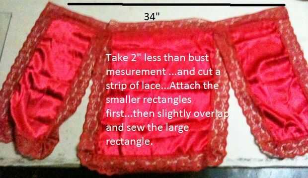 A continuación, tome 2" o 1.5" inferior a su medida de busto (supongo que varía según cada uno :-)) y corte una tira de encaje.