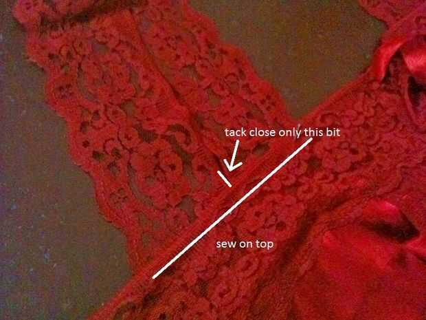 entonces... lugar el largo del cordón que medido colgando alrededor de su cuello al lado de él y tack.. .please cheque fotos de instrucciones claras. cerrar sólo la parte inferior donde se une con el cordón. Ahora fije otro encaje en el borde exterior en un ángulo... pin todos y poner en maniquí o del uno mismo y comprobar... Si feliz coser. por favor compruebe los cuadros en donde coser... como me han dejado espacio para echar un vistazo un boo ;-)