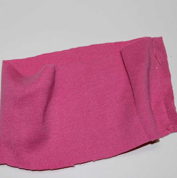 9. para la fijación del cuello, corte una pieza desde el punto de contraste, sobre dos tercios de la longitud de cuello ancho y 4 pulgadas de largo. Coser juntos los lados más estrechos (derecho lados juntos)