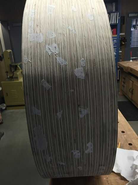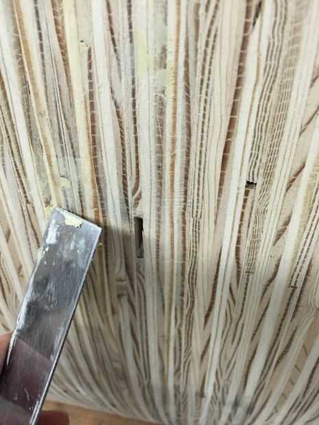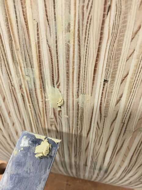 Muchos huecos en la madera contrachapada se expusieron curado corte. Llené con masilla de madera y mantuvo lijado.