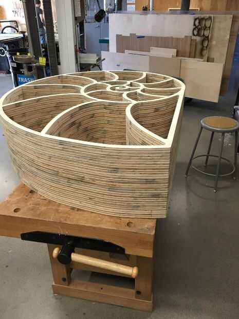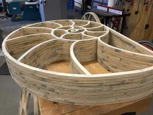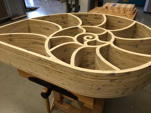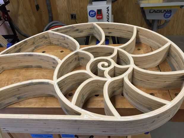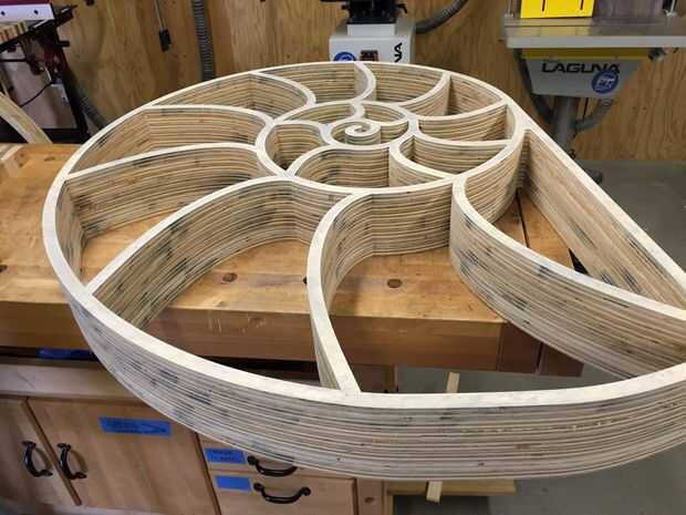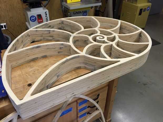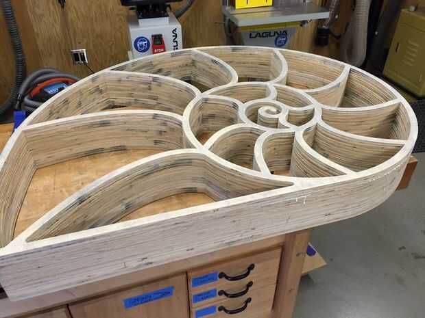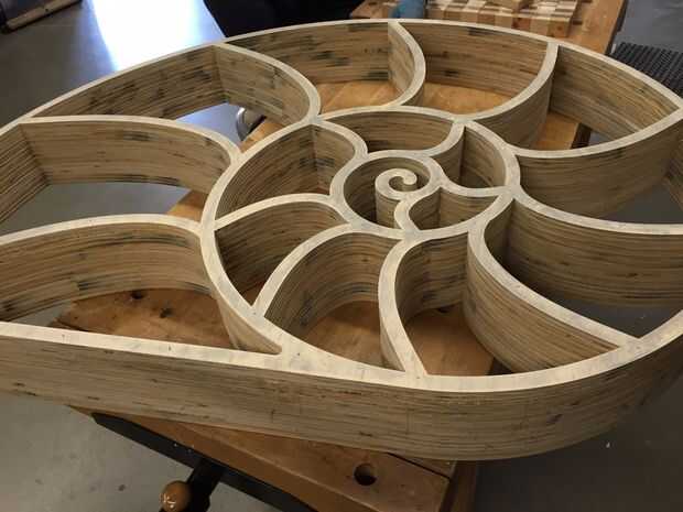 hace un tiempo dibujó esto en cad, tomó una gran cantidad de tiempo,es una caja de altavoz en forma de una concha de nautilus,yo jugaba con la abit diseño e iba a hojas de MDF de 18mm CNC y en forma de las hojas hacia atrás con pegamento para formar