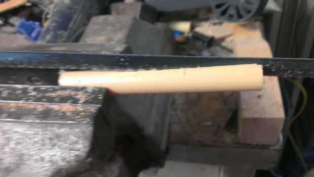 navaja de mango de cadena de bicicletauna lámina de cuchillo roto, sin uso y una cadena de bicicleta aceitoso nacido fuera del matrimonio...1.Es la parte inferior de la hoja con dos orificiosestaba equipado con el conector de cadena, martillado junto