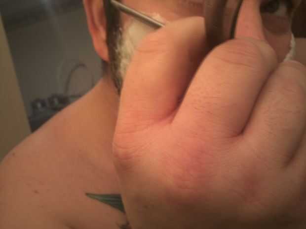 Tratar de crear una zona de afeitado plana. Es la mejor apuesta. Será difícil afeitarse el lado izquierdo de la cara con la mano derecha y viceversa.