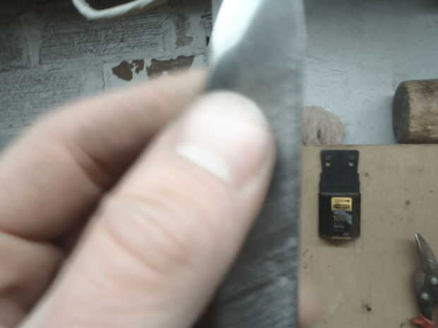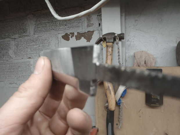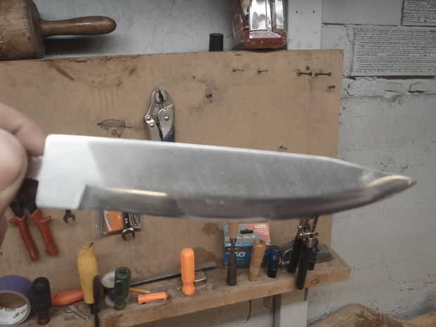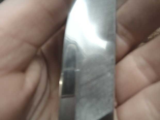 hice esto desde un archivo antiguo de Finlandia. He rectificado con una lijadora de banda. Llevé la porción de hoja más allá del punto magnético dejando el galo y el eje relativamente cool.and luego apaga lo en aceite. I pulido espejo encima de la arena de 80,120,220,400,1200 y compuesto para pulir. cortar la perpendicular en la parte inferior para aceptar donde yo poner una latón Cruz guardia y un mango de hickory. Espero conseguir pronto el latón y trabajar poco. sujetará la cola de rata en el mango. ¿Alguien tiene consejos sobre la mejor manera de hacer esto con lo que tengo hasta ahora?
