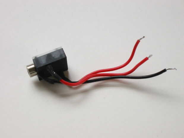 El cable de tierra puede soldarse directamente en su agujero. Los extremos de los cables de señal cada compartan un agujero con uno de los extremos de un resistor. Preparar el alambre y la resistencia girando los extremos juntos y aplicando un poco de soldadura. El agujero en que éstos deberán ser taladrado en ir a 3/64" para dar cabida a los dos cables. Soldar en su lugar.