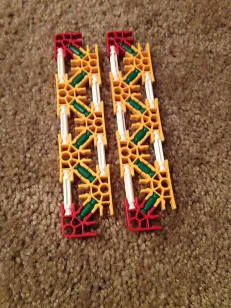 ¡ Las 2 piezas para la manija en la primera foto y luego conect con 2 blanco palos y rellenar el centro con conectores de púrpura con agujeros como en la foto segunda y tercera
