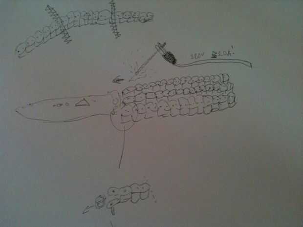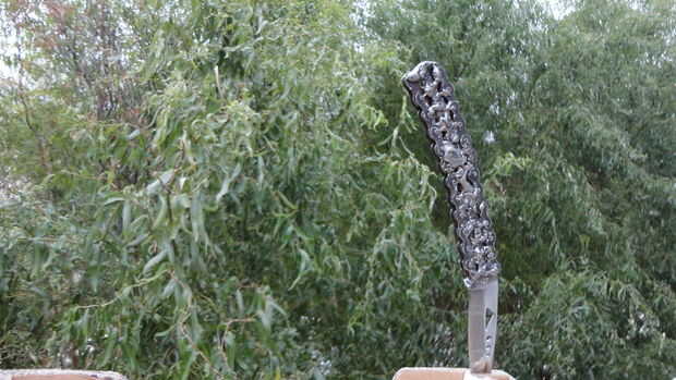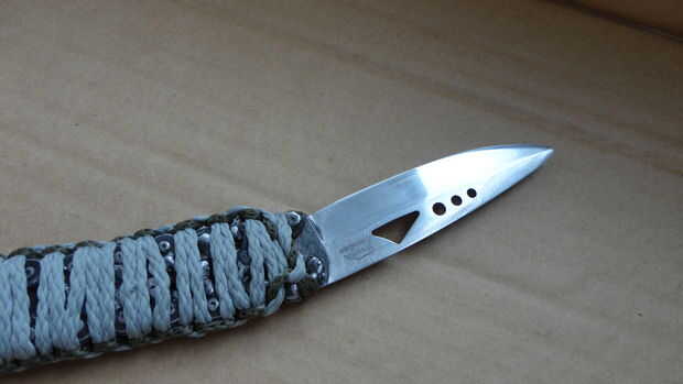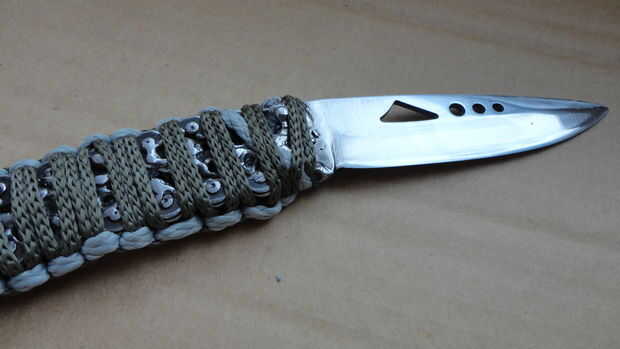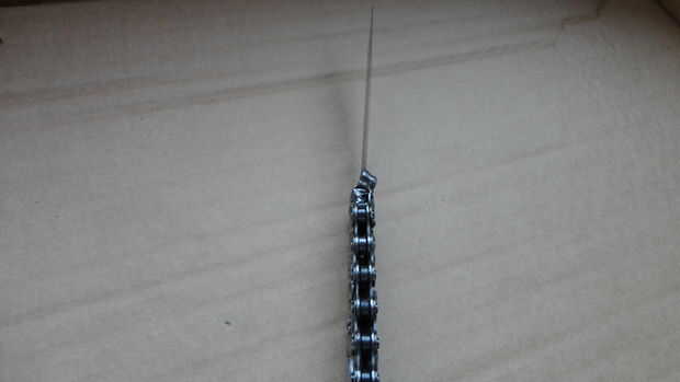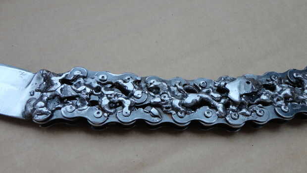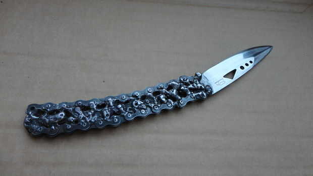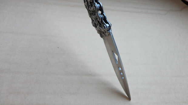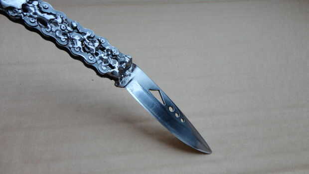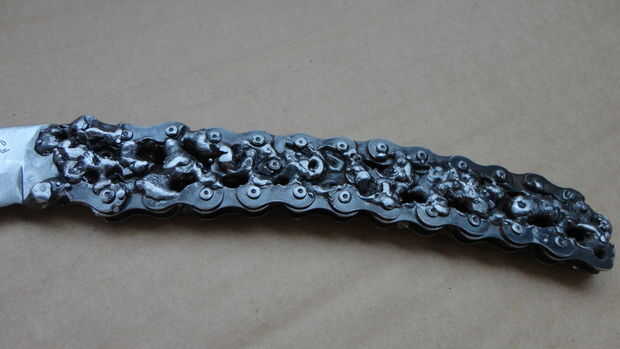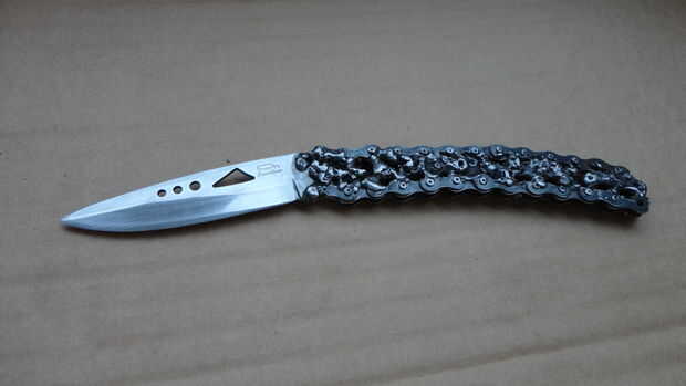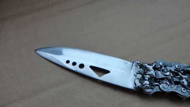una lámina de cuchillo roto, sin uso y una cadena de bicicleta aceitoso nacido fuera del matrimonio...