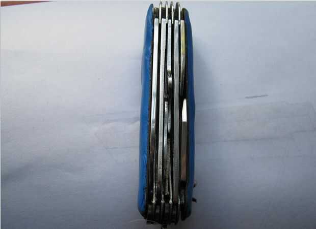 navaja de mango de cadena de bicicletauna lámina de cuchillo roto, sin uso y una cadena de bicicleta aceitoso nacido fuera del matrimonio...1.Es la parte inferior de la hoja con dos orificiosestaba equipado con el conector de cadena, martillado junto