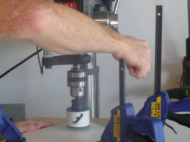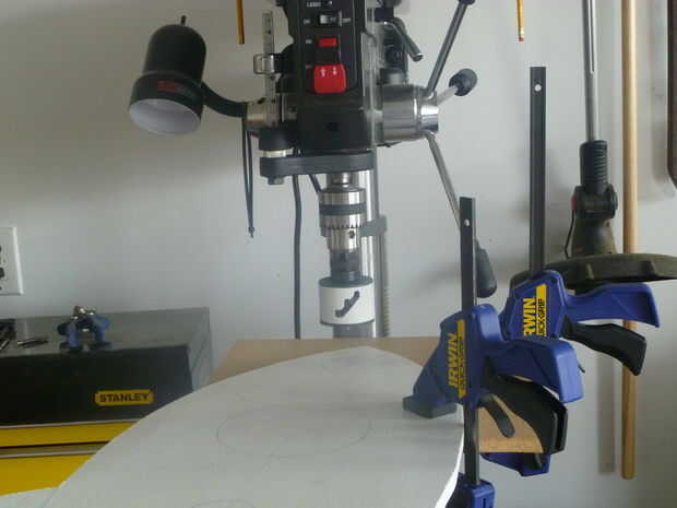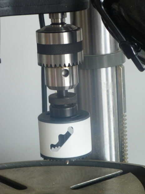 Usé una sierra del agujero 2 5/8" de la broca en el taladro. Asegúrese de ajustar su trabajo y siempre use protección para los ojos. Después de todos los agujeros se perforan sus luces una rápida prueba de ajuste.