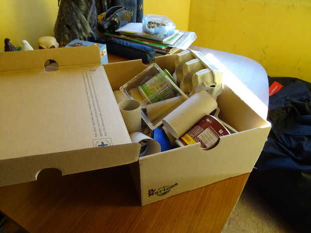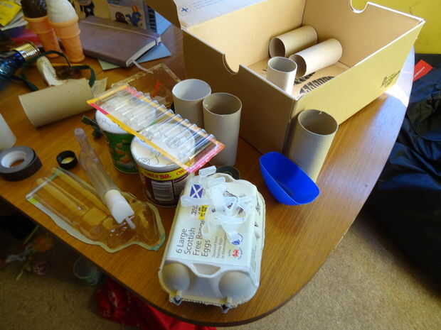 Si empiezas a acumular bits y sacudidas un poco antes del proyecto pueden acabar con una buena cantidad de grandes cosas. Envases de plástico como a paquetes de la batería, rollo de papel higiénico/cocina tubos, los tubos de pringles son todas las grandes adiciones de su escondite.