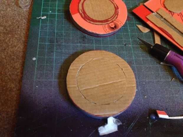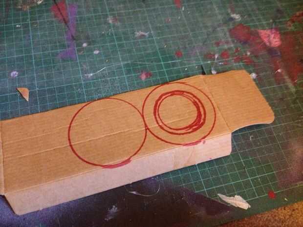 Aquí estoy usando las tapas de los tubos de pringles. Usando la tapa marca en la caja donde quiero colocarlos. Luego marque un círculo más pequeño dentro de este y recorte.