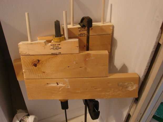 Aquí están los dos lados del carro cubrió con las clavijas y cola. Yo les reprimieron firmemente y deje secar durante la noche.
