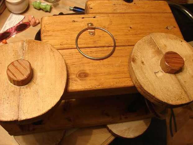 Tapacubos donde cortadas desde 1" tablero de pino y con muescas/resistido con una escofina de madera. Fueron pegados sobre el uso de pegamento para madera para cubrir los árboles.