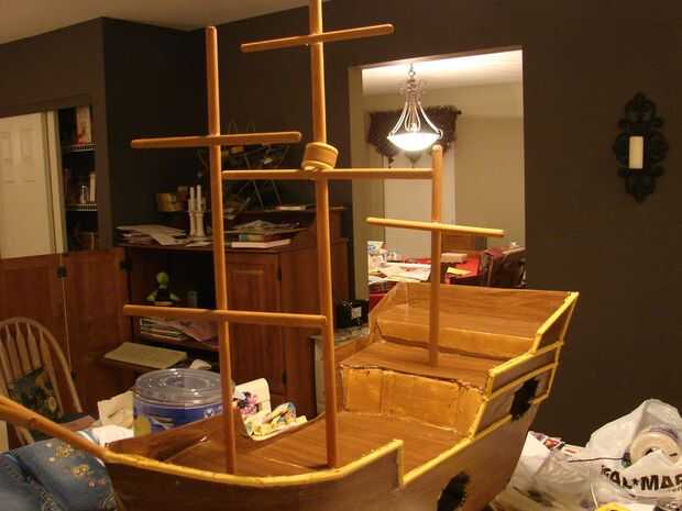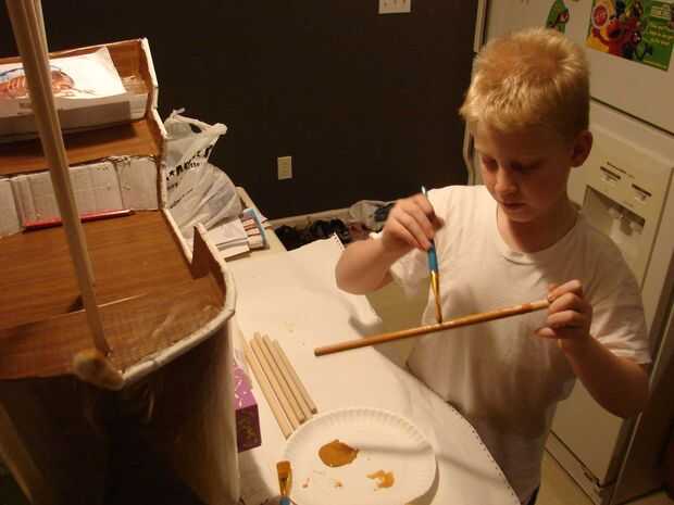 La imagen final muestra la nave después de ser pintado y listo para el montaje. El nido de 'cuervos' es un servilletero de madera. Tendrá un piso de cartón y va pegado al mástil.
