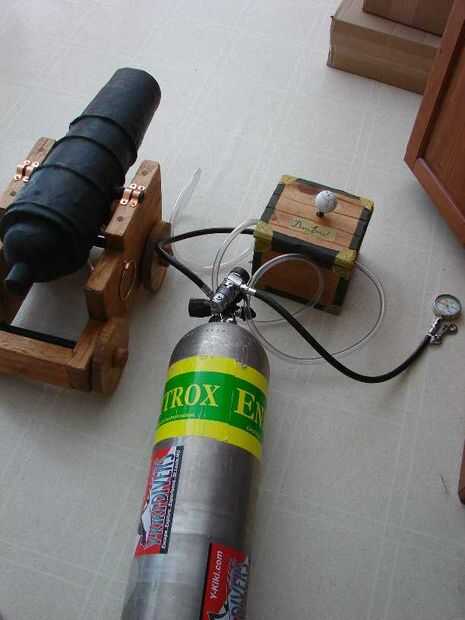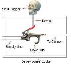 Estas fotos muestran la esquemática, cuna de soplo-arma, instalación pistola con gatillo de bola/pasador, el gatillo de pintado y detallado "Davey Jones 'Locker" y finalmente el tanque scuba enganchadas.