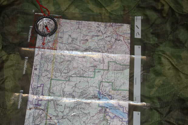 Ahora puede utilizar la brújula para encontrar un rodamiento a cualquier característica de terreno, camino, edificio, cuadrícula de coordenadas, etc en el mapa.