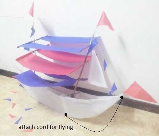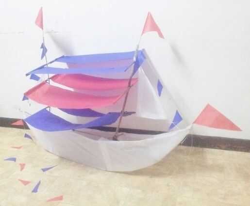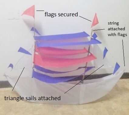 Ejecutar una cadena apretada desde la parte superior de ambos 'C' en las esquinas del barco... Coloque banderas.