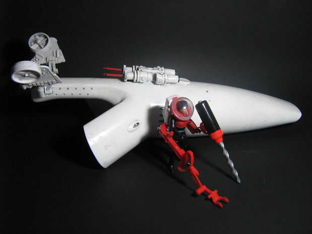 Una nave espacial de la aspiradora es fácil de hecho. Primero, retire las partes internas (cosas de motor y eléctrico). Se necesita el caso. Para las alas, usé casetes de un estéreo en una nave y parfurm tapas de en la otra. Para la cola, os adjunto piezas de juguetes. Utilice la basura plástica que desee! Personaliza tus naves espaciales! Incluso hice gaitling armas con caps y marcadores tubos de desodorante. Pintura utilizando pintura en aerosol.