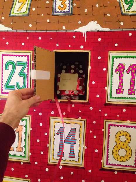 Llene cada espacio con un regalo para el día. Éste será probablemente su mayor gasto, pero también se puede hacer muy barato. Envueltos un pequeño pedazo de caramelo para todos los días y para los otros días compré pequeños baratos y útiles juguetes ect: pegatinas, un cardgame, un timeglass con arena coloreada y otras cosas divertidas