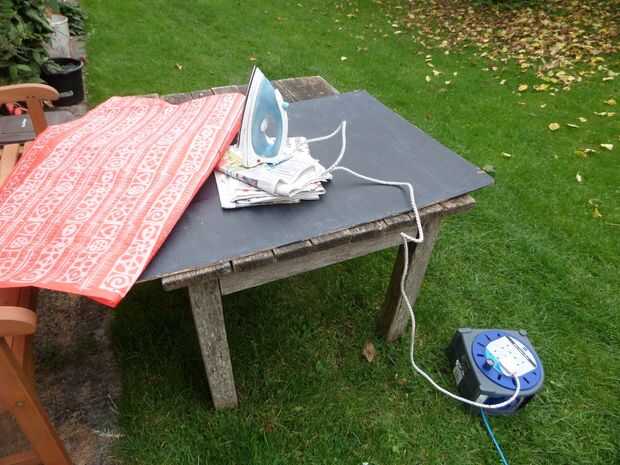 Una vez que el tinte es seco es el momento de la cera del hierro, que me gusta hacer afuera en el jardín, a causa de los vapores de la cera.