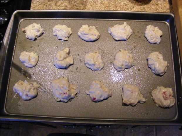 Pase la mezcla por cucharadas redondeadas sobre una bandeja engrasada. Hornear durante unos 15 minutos. Retirar y enfriar sobre una rejilla. Repita hasta que te quedas sin pasta de galleta. Las cookies será suave y cakelike. Rinde aproximadamente 5 docenas, dependiendo de lo grande que tu blobs de cookie.