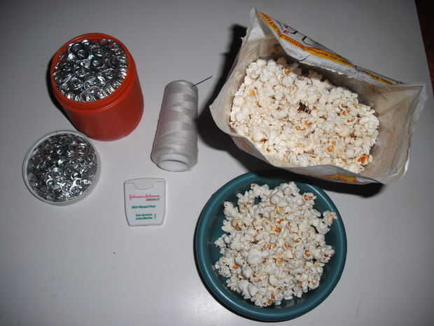 Realmente, algo que es pequeño y uniforme podría funcionar muy bien. En el trabajo, utiliza unos conjuntos de granos de la parte, cortar el lazo y pegan a los extremos. Antes de encadenar juntos las palomitas de maíz, también consideré usando pestañas pop en lugar de palomitas de maíz. Todavía no estoy seguro qué esto habría mirado como, pero finalmente decidía contra él. Otra alternativa geek que pensé era encadenar algunas teclas del teclado antiguo similares a este instructable de litio lluvia. En última instancia, sin embargo, acabo de ir con las palomitas de maíz. Usted puede elegir todo lo que tienes en la mano.