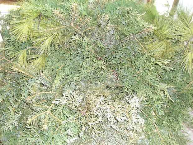 Vaya a su vegetación preparada y empiece a recortar pequeños trozos para aplicar a su base. Utilicé un poco más grande y más difícil de manejar (needled Espinosa) pinos primero. Los más grandes la grapa al soporte base y en posición vertical. Comience en el centro de la base y su forma de trabajo hacia fuera. Base, respaldo, uso alternando los tipos de vegetación. Seguir añadiendo varias zonas verdes para llenar el área de la base. Ver fotos de...