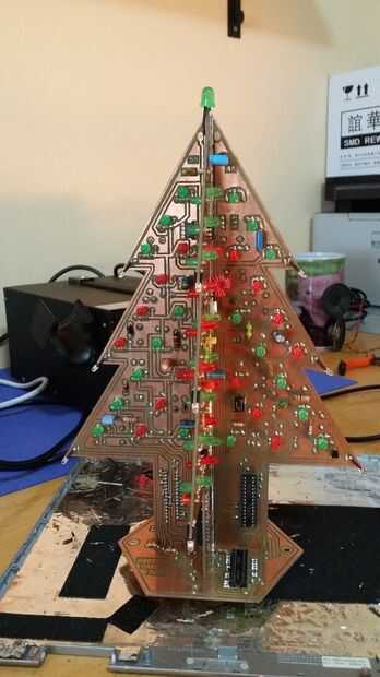 Una cosa que recomendamos es cada pin del ATMega328 en el interior de la caja, debajo de la base de la etiqueta. Eso lo hará más fácil si desea agregar cualquier otra funcionalidad. La tercera imagen muestra lo que hicimos para nuestro árbol.