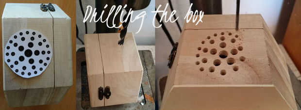 Puede encontrar el ejercicio adecuado para su caja. Utilizarlos para hacer los agujeros con cuidado, no ponga demasiado cerca porque puede romper la madera. Trate de no mover la caja durante la perforación. Cuando los orificios son hechos y terminados con la perforación, lije el interior de la caja para eliminar la madera repuesta izquierda.