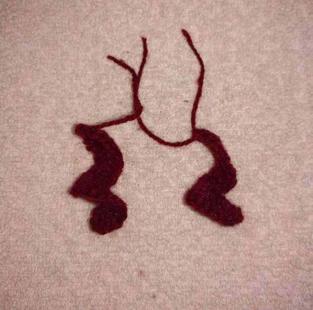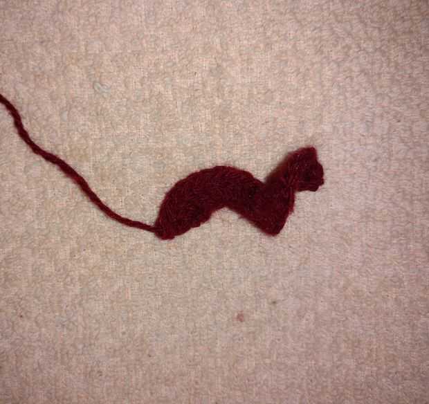 Fila 2: 3 cc de 3 puntadas de gancho, 4 cc en cada punto hasta el final de la cadena.
