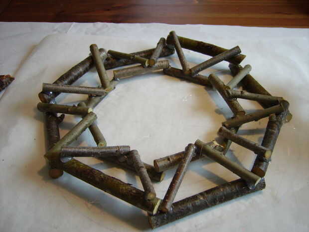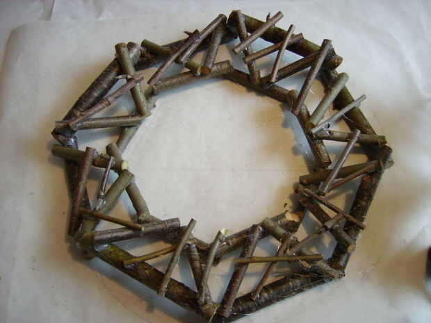 cortar sus ramas restantes en trozos al azar, largo, corto, fino, grueso - mucha variación hace que sea agradable,