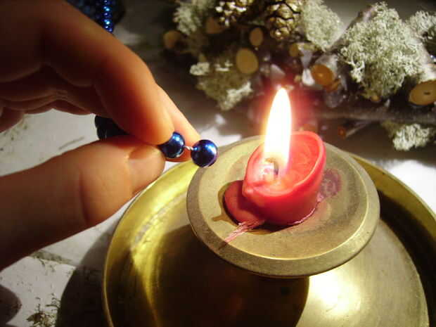 para ello, encienda una vela y fundir el hilo en el extremo de la guirnalda