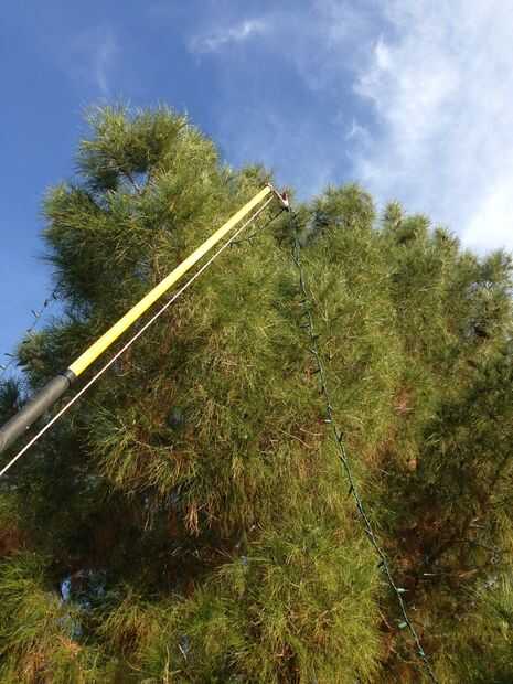 Ahora usted puede sujetar en una cadena de luces de Navidad, levante el polo a la ubicación deseada, tire del cable para liberar la cadena de luces. Es tan fácil como eso!