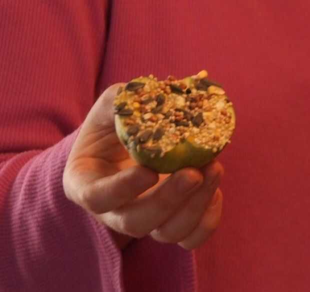 Usted puede también hacer lo mismo con piñas, apple o cualquier otra cosa ahí que cree que las aves pueden gustar.