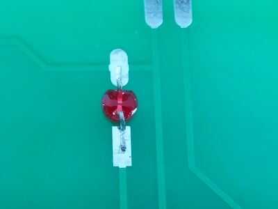 Doble las patas de los LEDs en forma de 'U' como se muestra. Recortar las patas y colocar sobre el tablero. Tenga en cuenta la orientación del LED: parte plana quede hacia arriba (de la almohadilla rectangular).