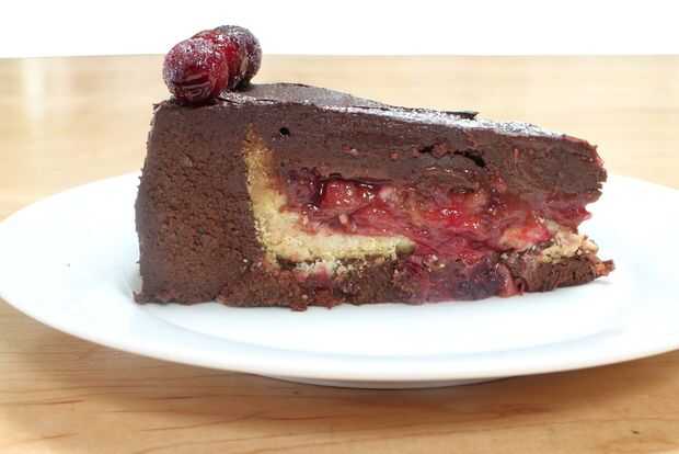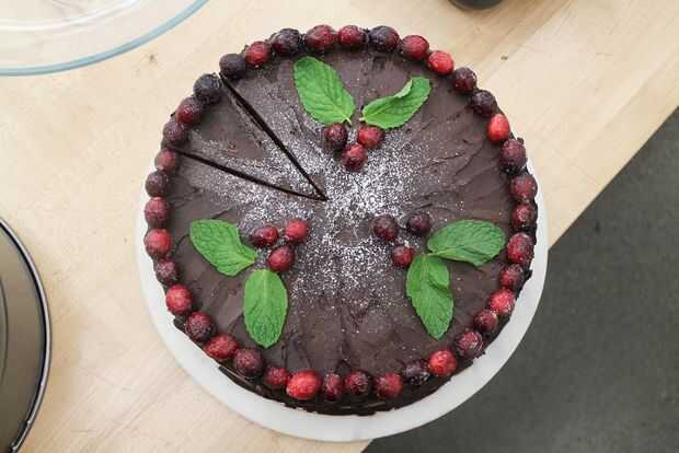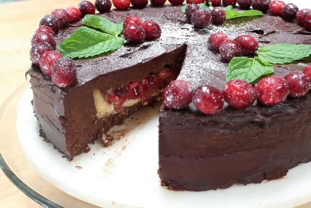 Algunos creen que hay dos clases de personas, gente que le gusta el pastel y gente que le gusta la torta. Creo que hay un tercer pueblo bueno, que quieren tanto. Esta receta es el mejor de los mundos. Hecho de una dulce y tarta de pera, cocido al horno en el centro de un pastel de chocolate sin harina y arándano rojo ligeramente picante. Esta torta de pastel es un encantador contraste entre oscura, delicioso chocolate y un relleno de fruta fresca. Hice esto para una cena de acción de gracias (a pesar del nombre) y tener amigos veganos y dietas libres de gluten. No querer salir hacia fuera, hice este vegano receta y sin gluten. Fue un enorme éxito en la cena, un par de días después fui contactado por uno de los invitados a su fiesta de Navidad (que escuchado me jactaba de mi trabajo) basado en la exquisitez de este pastel pastel, verdadera historia!