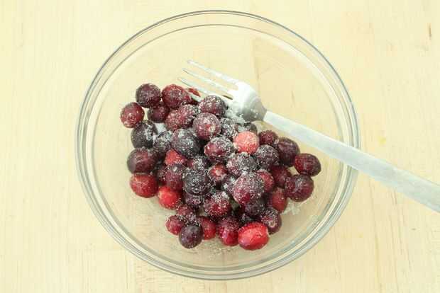 Mezcla de arándanos con el jarabe de arce, les capa bien. Añadir azúcar a la mezcla para dar un efecto brillante y cubierto de nieve.