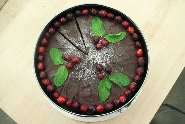 Coloque la azucarada arándanos alrededor del borde de la torta de pastel y en el centro, dispuestas con hojas de menta como bayas de acebo. La piecaken es completa!