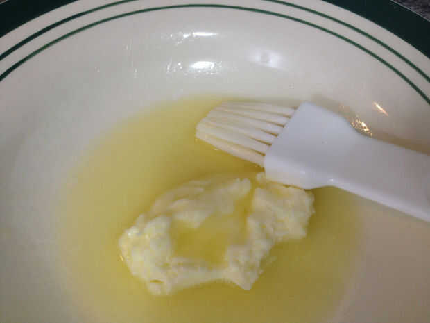 Traslado al estante de enfriamiento y la tapa cepillo con 6 cucharadas de mantequilla, derretida