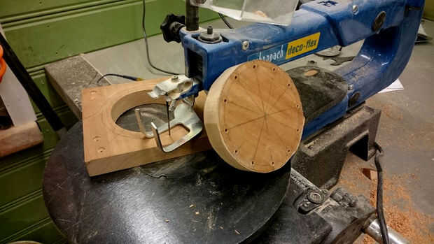 - Corte el círculo exterior con una sierra caladora o sierra de contornear